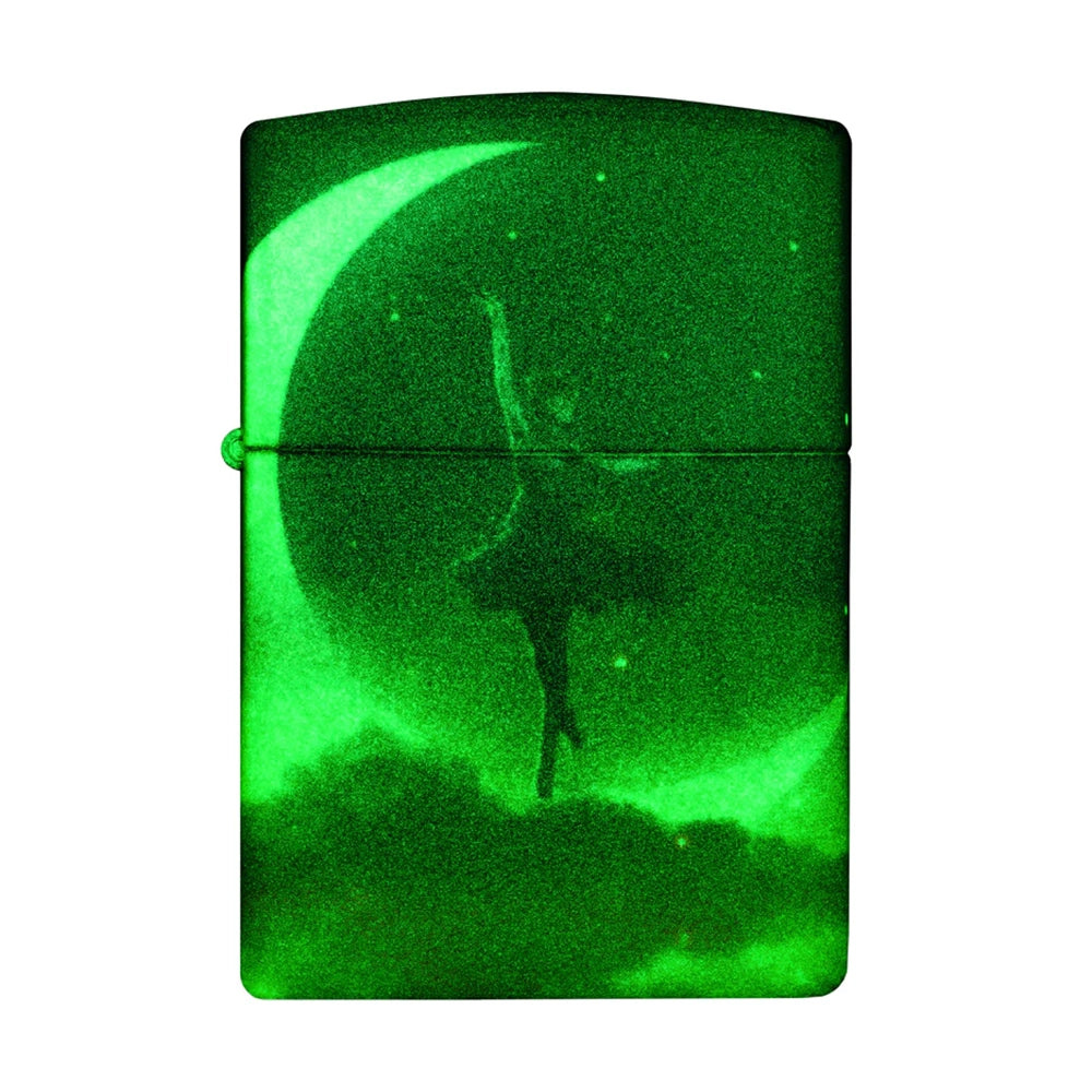This model uses a classic fluorescent paint body and uses a 540-color surround color spray process. An elegant dancer dances on the crescent moon, and in the darkness, it becomes even more ethereal and dreamy. Comes packaged in a gift box. For optimal performance fill with Zippo lighter fuel.