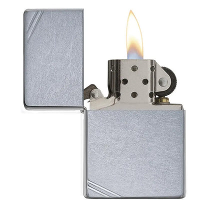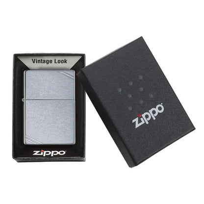 Няма нищо старо в този ретро модел Zippo. Разполага със заоблени ъгли и ръбове, заместващи квадратния дизайн на Vintage 1935 г. Тази запалка Street Chrome™ има декоративни наклонени линии в ъглите. Предлага се в подаръчна кутия. За оптимална работа, използвайте само оригинален бензин Zippo.
